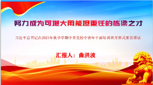 曲洪波院长对习近平总书记在2021年秋季学期中央党校中青年干部培训班开班式上讲话精神进行了系统解读,并结合自己在中央党校的学习生活和思考上了一堂思想深刻、内涵丰富的主题党课。