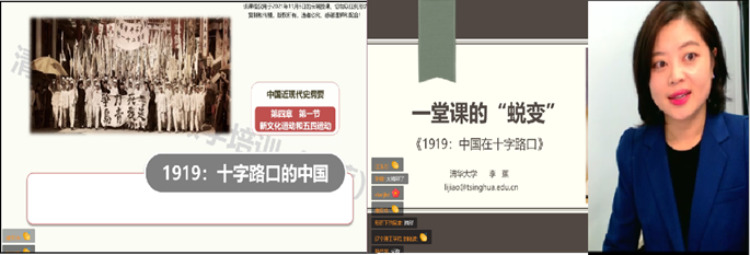 李爽老师的展示题目为《新文化运动与思想解放的潮流》,李老师从对资产阶级革命的反思、以“民主”“科学”为新思想的传播扫清障碍、新文化运动的重大历史意义三个方面言提纲挈领地阐述了新文化运动兴起的原因、内容以及意义。李老师重点分析了新文化运动中“民主”“科学”与“文学革命”的深刻内涵、影响及其为马克思主义在中国传播所起到的奠定思想基础的作用。此外,李老师还结合本校具体教学情况,分享了课程设计的整体思路及特色。