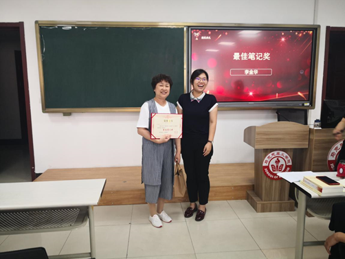 会上,齐艳霞副院长宣读了获奖名单。通过投票活动,获得最佳导读人的是白蔚老师、最佳助读人闫华老师以及最佳主持人符越老师。经过超星学习通后台统计得分,获得最佳答题人的是卢海燕老师,最佳笔记奖的是李金华老师,最佳团队奖为马克思主义基本原理概论教研室。赵冰梅、王秀华、王洪飞、吕健和王旭老师分别给“书香马院•共读有我”第三期获奖老师进行了表彰颁奖。整个颁奖仪式充满了欢声笑话,获奖教师纷纷表示,要再接再厉、再创辉煌。
