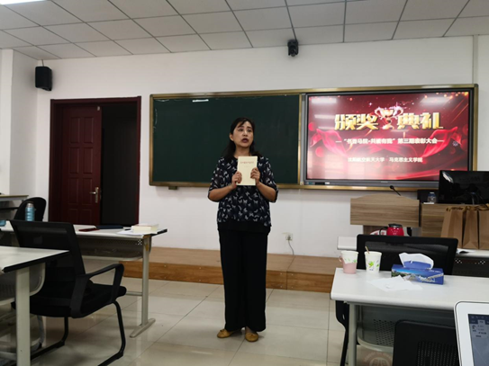 接下来,yl7703永利召开了“书香马院•共读有我”第三期表彰大会。会上,齐艳霞副院长对 “书香马院•共读有我”前三期进行了总结和回顾。古有言:立身以立学为先,立学以读书为本。我院每周三坚持开展“书香马院•共读有我”活动,迄今为止,已经一起研读了29本书。通过研读宣讲,我院教师增长了知识储备、开阔了学术视野,营造出一个日益浓厚的学术氛围。