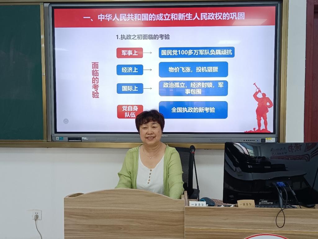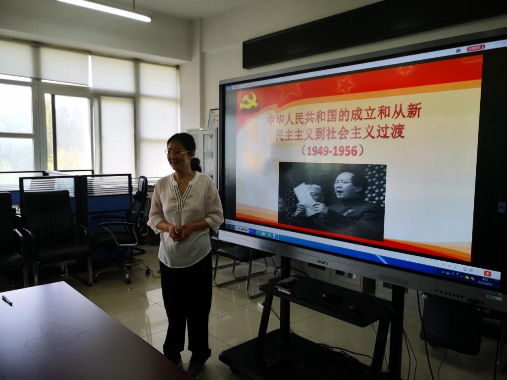 教工第一党支部宋丽娜为党员同志导读《中国共产党简史》第五章中华人民共和国的成立和社会主义制度的建立。宋老师带领大家一同回顾了1949年-1956年这段历史时期。1949年10月1日,中华人民共和国的成立,深刻改变了中国历史发展的方向,也深刻影响了世界历史发展的进程。这一划时代的伟大事件,是中华民族100多年来为实现民族独立和人民解放前赴后继、艰苦奋斗取得的伟大成果,开启了中华民族伟大复兴的历史新纪元。宋老师介绍了全国人民在中国共产党的领导下全面展开新民主主义改革和建设的具体过程。在接管城市的过程中,没收官僚资本企业,建立了新中国的国营经济。在党中央的领导下,中央财经委员会成功地进行了稳定物价和统一财经的重大斗争。到1950年6月,党和国家在统一国家财政经济方面的大量工作,使国家财政收支和市场物资供求基本平衡,财政经济状况开始好转,为安定人民生活,恢复和发展工农生产,创造了有利条件,打好了新中国建立以来的第一场经济仗。