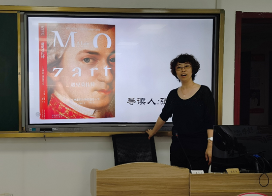 首先,张晓茜老师从三个方面对本书进行了细致的导读。一是总述主要内容,她指出:本书围绕的是莫扎特的音乐与内在情怀而展开的,莫扎特一个从小被称为天才的少年,却在成长中,没有成为一个一板一眼死板的音乐家,而是活成了一个看清世界后,依然热爱生活,快乐自在的音乐大师,他没有给自己设限,也没有给自己设框,而是寻求着一种自在随心放飞的状态,一种快乐的人生,他的音乐成为了人们的神话。二是介绍了莫扎特艺术道路的引路人,他的父亲:利奥波德·莫扎特。《论小提琴演奏的基本原则》是其父享誉整个欧洲音乐界的作品,莫扎特早期手稿均是由父亲记谱及校订,他一开始便把莫扎特当作完美儿童的典范来精心培养。三是解读“莫扎特效应”。所谓“莫扎特效应”是指“莫扎特的音乐可以作为胎教音乐,可以提高孩子智商”,这是上个世纪九十年代初美国科学家的研究结论,商家即群起炒作,但其实这样笼统的论断是会误导人的。因为莫扎特的创作主题丰富、风格多样,他的音乐也有很多表现激越强烈的感情,或忧伤或狂热或悲壮,这样风格的音乐就算是天才之作也不适宜选作胎教音乐的。