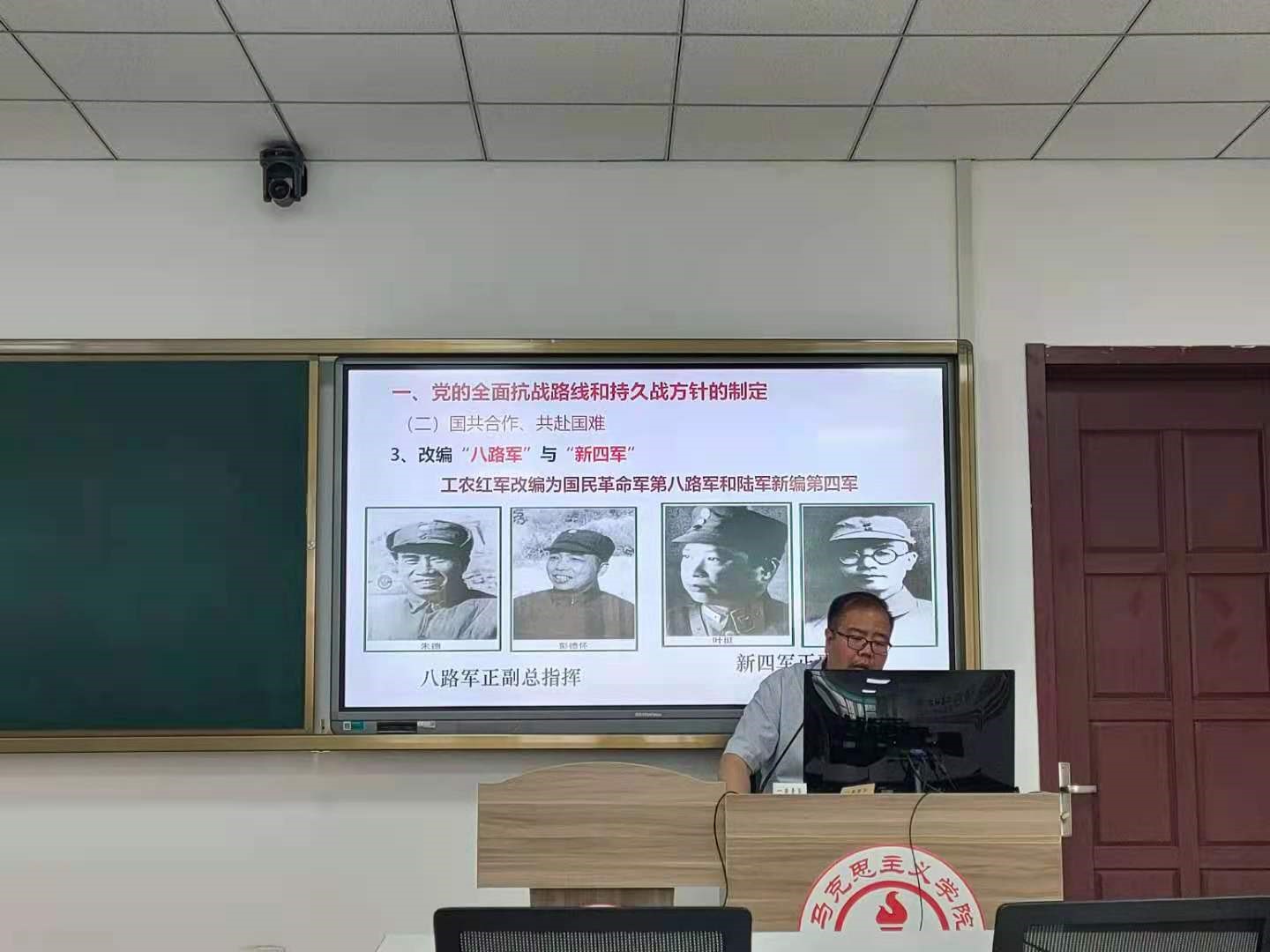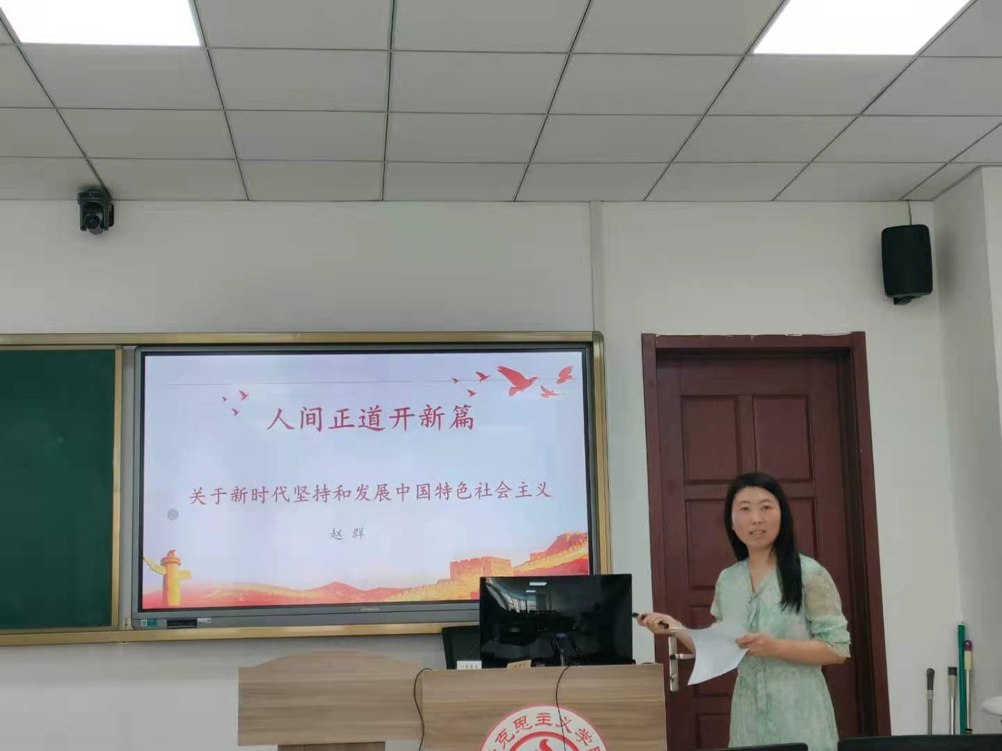 聂鑫同志为教工第一党支部做了“全民族抗日战争的中流砥柱”为主题的讲座。讲座以《中国共产党简史》第三章内容为基础,围绕党的全面抗战路线和持久战方针的制定、开展敌后抗日游击战争和坚持统一战线中的独立自主、坚持“抗战、团结、进步”方针、巩固抗日根据地和推进抗日民主运动、加强党的建设、推进马克思主义中国化和开展整风运动等内容,再现了中国共产党凤凰涅槃、浴火重生的历史新征程。以历史观、大局观鼓励党员同志们延续独立、自由、解放的意志,实现理论与实践的高度统一。赵群同志围绕《习近平新时代中国特色社会主义思想学习问答》第三章内容,重点阐释了“中国特色社会主义进入新时代,新在哪里?”和“为什么说社会主要矛盾发生变化,但我国仍处于社会主义初级阶段?”两个问题,引发党员共鸣,带来理解时代命题的新角度和新方法。