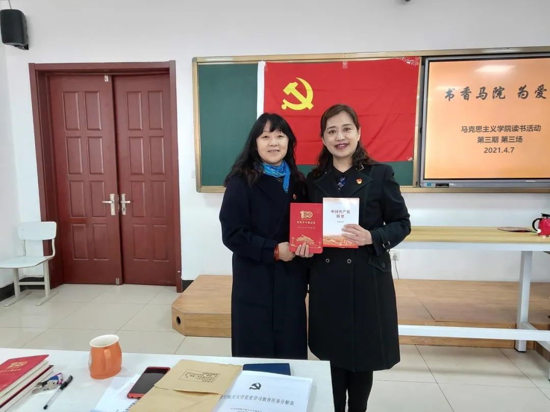 学科带头人赵冰梅教授指出,学院的“书香马院”读书活动对教师的教学内容准备很有意义。通过阅读党史文献,可以拓宽教师的视野,鼓励教师将“四史”教育的内容切实融入教学中,遵循“教师主导性和学生主体性相统一”的原则,深入研讨“以学生为中心”的教学方法,创新考核评价体系,加强“备学生”的环节,通过行之有效的教学方法不断增强课程的思想性、理论性和亲和力、针对性,打造师生共同参与的有效课堂。