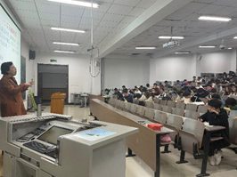 张老师详细介绍了汉字的起源说,在众多的学者探究之下,主要有以下几种说法:1.仓颉造字说《说文解字》许慎2.结绳说3.八卦说4.契刻说5.符号说6.图画说。张老师通过具体的故事和案例展示来展现这几种学说的由来和依据,并且联系实际生活来具体阐释。接下来,张老师讲解了汉字的构造方式,从汉朝以来,相沿有“六书”的说法。六书之首就是象形法。具体解释了学术界六种构造方式。1.象形2.指事3.会意4.形声字5.转注6.假借字。张老师通过自己的书写,让大家来猜测古文字的具体含义,同学们也积极应答猜测。顺着汉字的发展脉络,张老师进一步讲解汉字与中国文化的具体联系,汉字的演进也代表着中国大一统政治的发展。也同样是不同时期中国文化的表现形式,也展现着时代文化的逐步演进。而且汉字也体现着我国南北地区居住方式的历史演进,张老师通过不同字表现的居住方式和住宅部件的不同来体现汉字的独特含义,在展现汉字的魅力的同时也描绘了中华民族的南北文化的和而不同,还有其生动的可视化的生活联系。