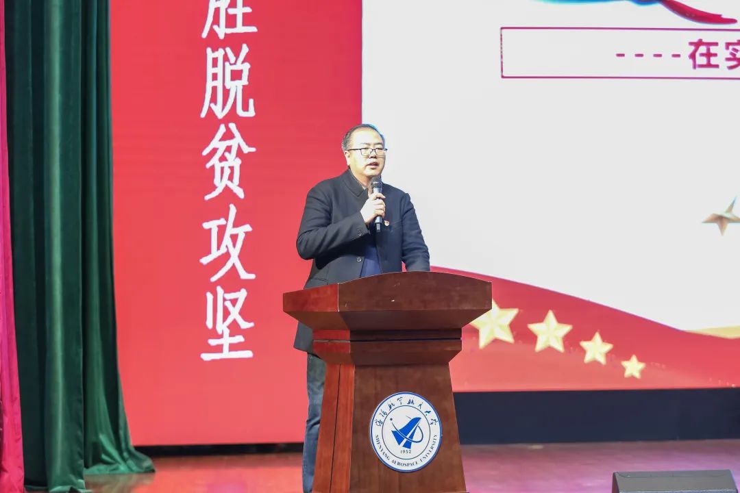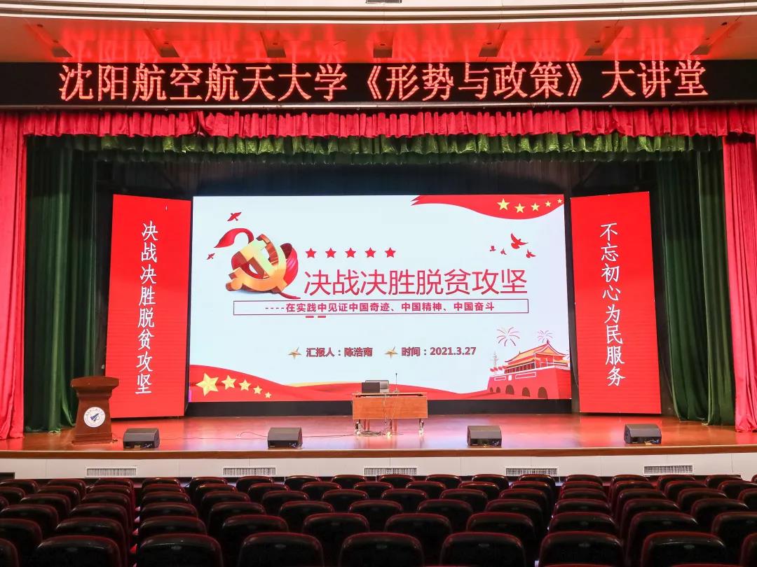 陈书记的课程以“决战决胜脱贫攻坚——在实践中见证中国奇迹、中国精神、中国奋斗”为主题,紧紧围绕“青春正步走,无悔扶贫路,下恒心吹响脱贫攻坚冲锋号”“重立军令状,不亏沈航人,彰显共产党人的精神与担当”“ 摒弃虚荣心,踏上新征程,让使命在乡村振兴之路上闪光”三个方面,与在场同学们分享了自己奋战在脱贫攻坚一线工作中的感触与收获,陈书记的授课声情并茂,把在扶贫一线的真实见闻讲述得生动真切,讲到动情之处声音几度哽咽,赢得了在场同学们的阵阵掌声。最后,陈书记深切寄语广大沈航学子,希望同学们能充分发扬“德能并进,勇毅翔远”的校训风采,领会“艰难困苦、玉汝于成”的哲理,努力学习,埋头苦干,做一个对社会和国家有用的人。