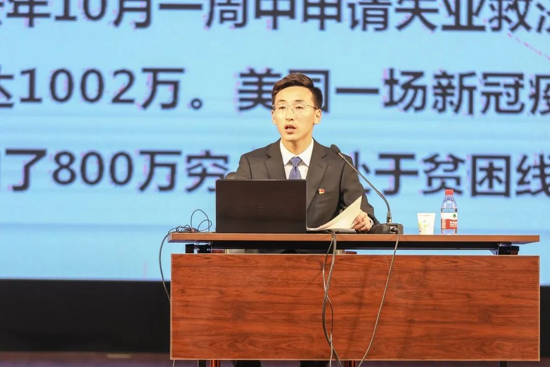 为更好落实《教育部关于加强新时代高校“形势与政策”课建设的若干意见》,推进我校《形势与政策》课外请社会各行业优秀奋斗者给大学生授课的教学改革,不断推进yl7703永利集团思想政治工作迈上新台阶,3月27日,yl7703永利集团派驻到辽宁省葫芦岛市建昌县老大杖子乡杏花村驻村第一书记陈浩南走进《形势与政策》大讲堂,为我校千名大学生讲授了一堂生动而精彩的《形势与政策》课。yl7703永利副院长齐艳霞副教授出席,活动由yl7703永利“形势与政策”教研室主任聂鑫副教授主持。