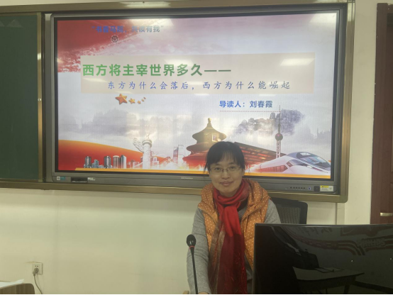 “西风压倒东风,还是东风压倒西风”围绕伊恩莫里斯编写的《西方将主宰多久》这本书,刘春霞老师从地理因素、天启五骑士、人类社会发展指数、人类未来的预测四个方面展开导读,用社会发展指数为引导帮助我们看清历史的基本轮廓,引入了能量获取、社会组织、战斗能力、信息技术点等四个基本变量来分析本书,最后总结出了本书的两条结论即在以往至少15000年的历史中,绝大多数的时间是西方主宰了世界,但是在未来的可能的时间当中,东方可能超越西方。此外,刘春霞老师还在阅读本书的过程中指出了对本书中存在的一些缺陷,如东方西方的划分问题,以及本书中存在的史料不真实、缺乏实际证据的问题,引起各位老师的热议。