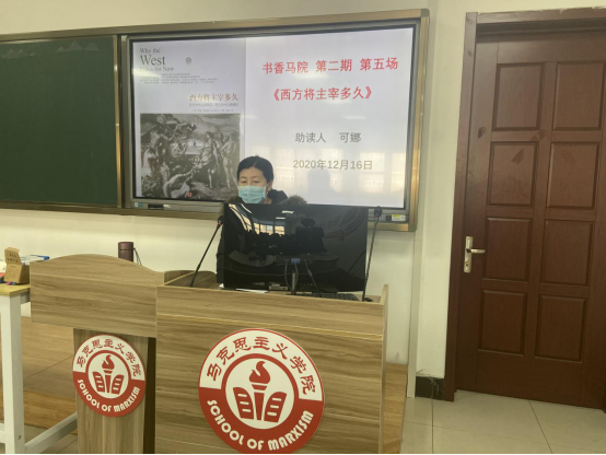 积蓄马院新动能、构建发展新格局,2020年学习型马院打造工程系列活动——“书香马院•共读有我”第二期第五场读书活动继续进行。12月16日上午全体马院教师齐聚经管楼321教室,共读书目《西方将主宰多久》。