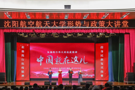 精彩课间音乐快闪活动也走进了本次形势与政策课大讲堂。课间休息时分,沈航学子精心准备了音乐快闪活动,为大家带来了多种形式的现场表演,以爱国主义和抗疫精神为主题的诗朗诵、歌曲《我的祖国》及民族舞蹈等。现场同学也打开自己的手机闪光灯,配合着音乐节奏同唱爱国之歌,同抒爱国之情。快闪活动契合课程主题,实现了课程内容与主题教育活动的有机统一,极大地调动了同学们的学习积极性,收到了良好的育人效果。