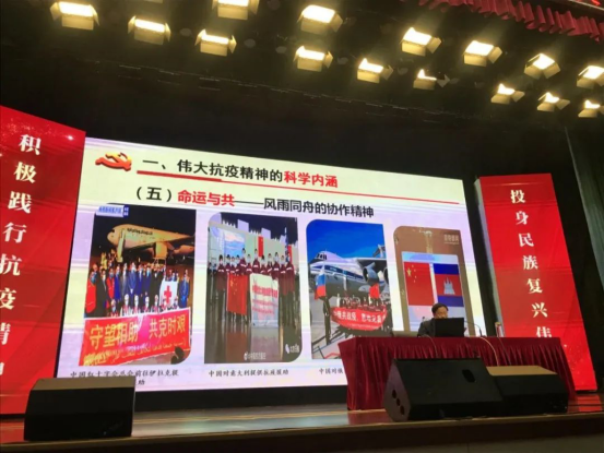 在形势与政策大讲堂上,翟书记深刻概括了抗疫精神的重要内涵,指出,以习近平同志为核心的党中央领导全国各族人民共同抗击新冠肺炎疫情形成的伟大抗疫精神具有丰富的科学内涵,主要体现在:生命至上、人民至上的为民精神,举国同心、众志成城的团结精神,舍生忘死、奋勇向前的牺牲精神,尊重科学、精准施策的求实精神,命运与共——风雨同舟的协作精神,引导学生用心聆听课程。