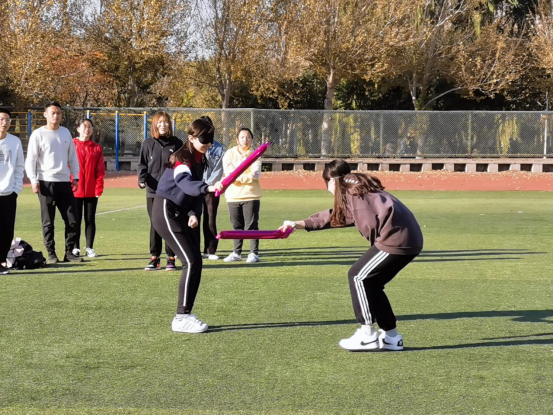 接下来进行的是“爱的魔力转圈圈”,组员相互配合完成布条旋转挑战。很多同学即使转的头晕,仍坚持完成了任务。