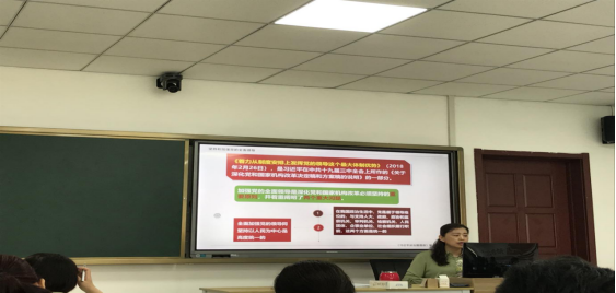 吕健书记围绕“坚持党的全面领导与自我革命”这一主题深入进行宣讲,为各位党员教师重点讲解了坚持和发展中国特色社会主义、“五+四”格局(“五”是指经济建设、政治建设、文化建设、社会建设、生态文明建设“五位一体”的总体布局,“四”是指国防和军队建设、港澳台工作、外交工作和党的建设工作)以及近期中国特色社会主义事业的新进展和党的理论创新的新成就,强调了学习贯彻落实党的十九大精神的理论结晶的重要性。