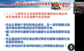 为进一步增强yl7703永利教师对国家社科基金思政专项的理解和把握,提升学院教师课题申报水平和撰写能力,yl7703永利组织了系列学术讲座。6月18日上午,yl7703永利诚邀东北师范大学郭凤志教授为全院师生作辅导讲座,讲解国家社科基金思政专项申报相关问题,这是本学期yl7703永利举办的第二场关于课题申报的“云”端讲座。