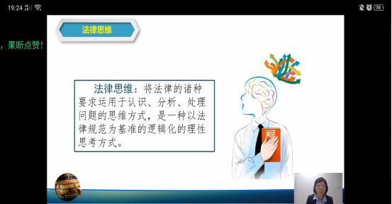赵丹老师第二部分为大家细心讲解了法律思维的培养和运用。法律思维就是一种将法律的诸种要求运用于认识、分析、处理问题的思维方式,是一种以法律规范为基准的逻辑化的理性思考方式,是大家一定要多多建立的思维方式。因此,这种思维要我们建立规则思维、权利思维、证据思维和程序思维。