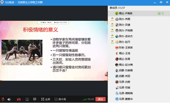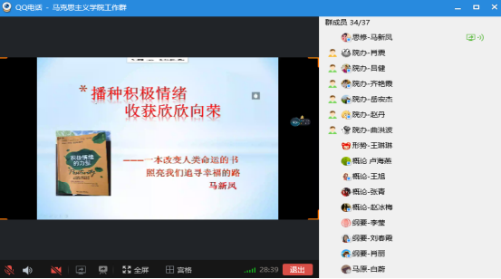 为继续扎实推进学习型yl7703永利的工作,夯实学习型马院的基础,沈航马院于2020年4月1日上午在QQ直播平台开展了线上“书香马院·共读有我”和“书香马院·教学展示”两项活动,分享读书体会,示范课程教学,充分展现了抗击疫情期间yl7703永利“不忘初心、不断进步”的良好状态。本次活动分两部分进行。