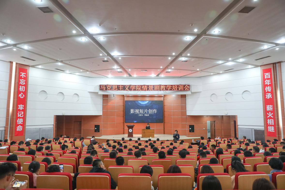 学生们在培训的过程中始终兴致高涨,台下传来了一阵又一阵的喝彩声。培训讲座结束后,针对学生们提出演员的选择、场景的布置、后期的剪辑等相关问题,李加禾老师都耐心的逐一进行了解答。为了方便学生们在今后的学习中能够随时随地进行咨询和交流,李老师还面对面建立了一个“思政情景剧互帮互助交流”群。此次培训学生们纷纷表示收获满满,激发了他们拍摄好高质量、有内涵、有深度思政课DV情景剧的信心和决心。情景剧教学法通过自编、自导、自演、自制、自评等方式让学生们参与到思政课教学中来,让学生在寓教于乐、寓教于文、寓教于情、寓教于理中发挥自身学习的主动性、积极性和创造性。